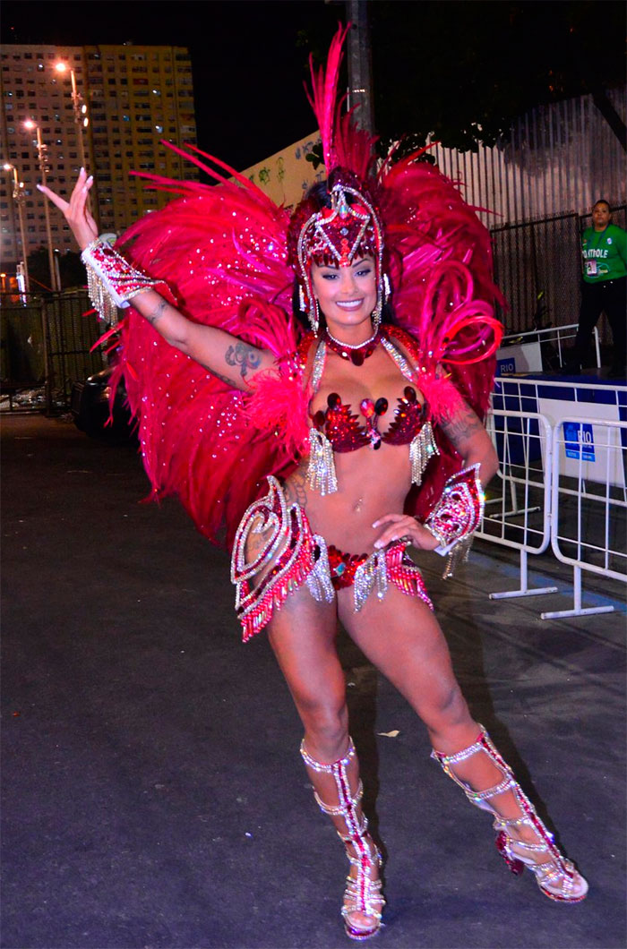Cris Vianna mostrou todo seu corpão durante o desfile da Imperatriz Leopoldinense, escola da qual é Rainha de Bateria. Agremiação homenageou a dupla sertaneja Zezé di Camargo e Luciano