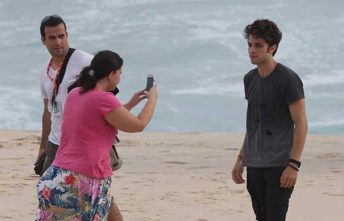 Além de Chay, Camila Pitanga e Gabriel Braga Nunes também gravaram algumas passagens da trama. Os dois, que vão interpretar um casal, protagonizaram um beijão em plena areia enquanto seguravam a água de côco que estavam tomando.